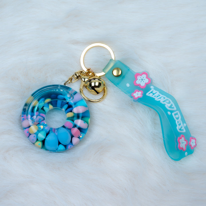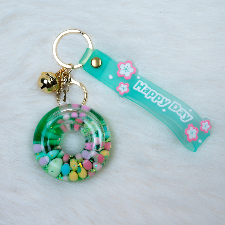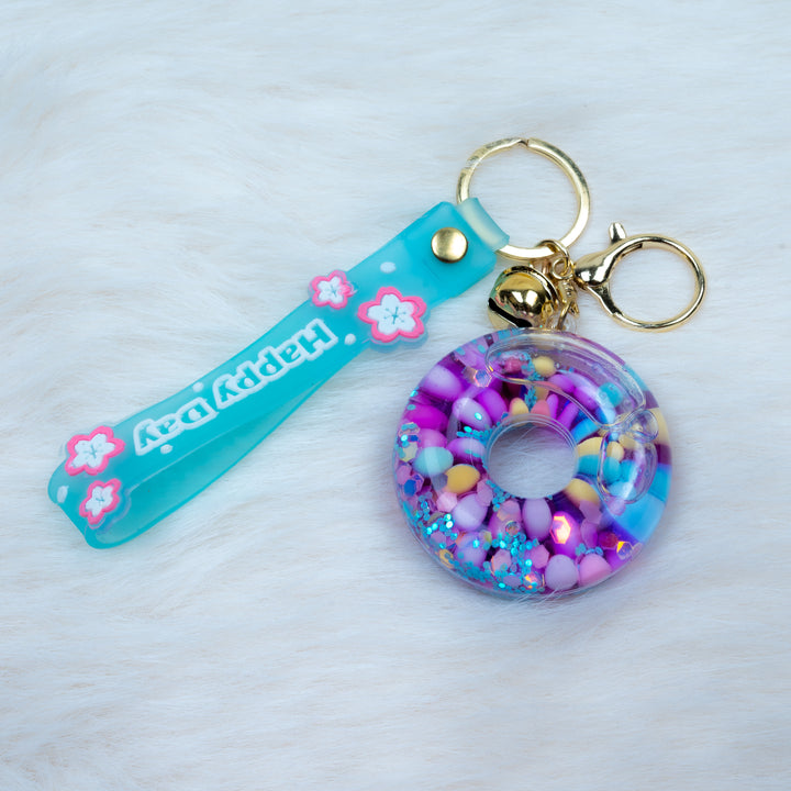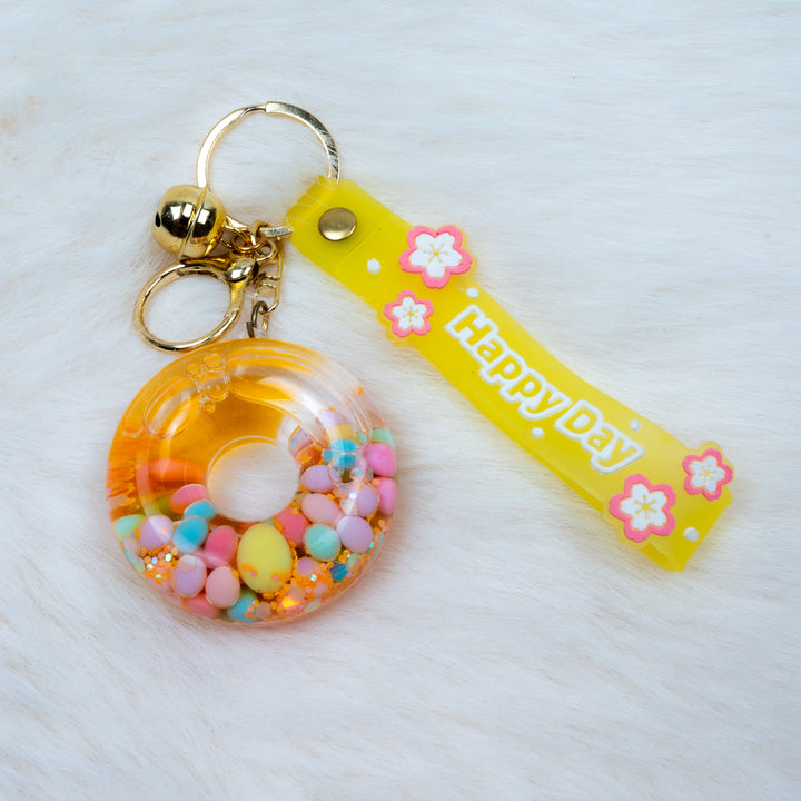 Title Option: Sparkling Donut Keychain with 'Happy Day' Strap | Colorful Resin Charm for Bags & Keys