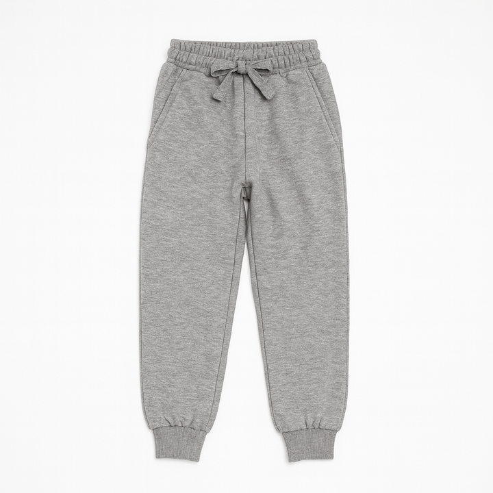 With practical side pockets and a classic heather grey shade, these joggers pair effortlessly with hoodies, sweatshirts, and t-shirts — making them a perfect everyday essential for school, playtime, or outings.