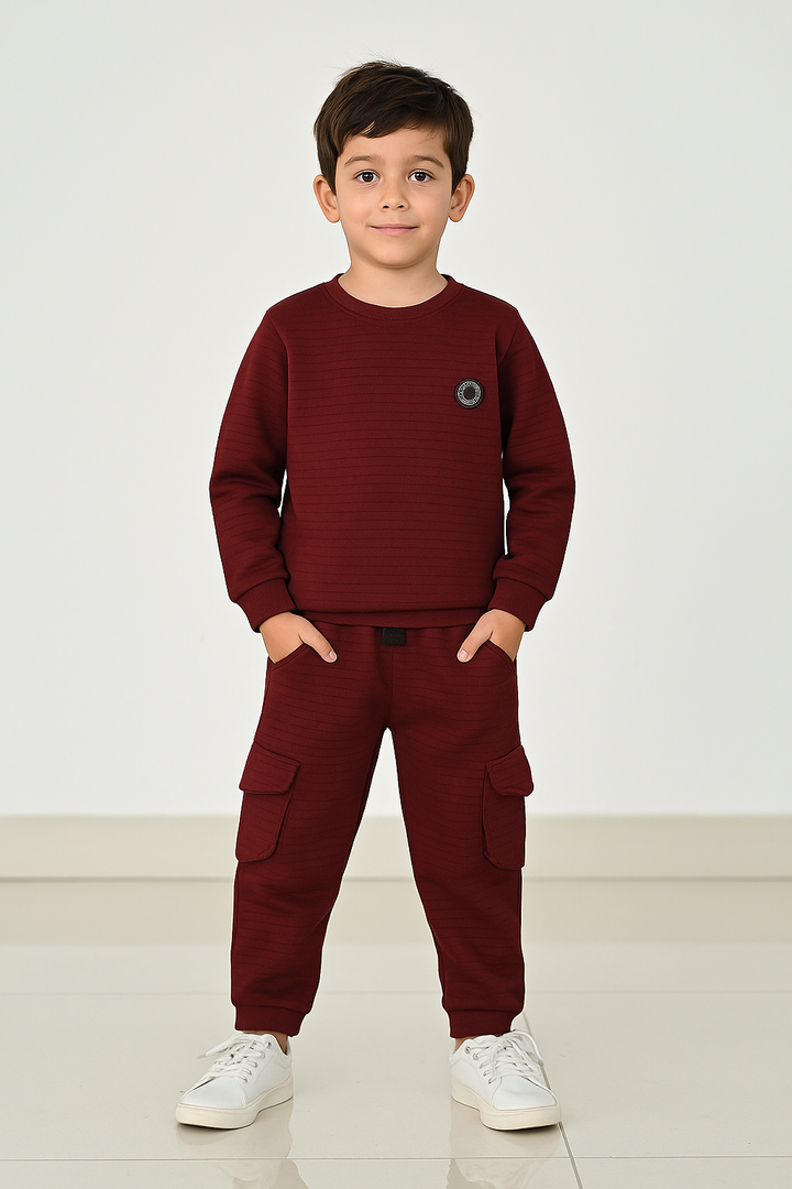 Keep your little one cozy and stylish this winter with our Premium Maroon Boys Tracksuit, designed for comfort, durability, and everyday wear. This 2-piece set includes a soft sweatshirt and matching jogger-style trousers—perfect for school, outings, or casual home wear.