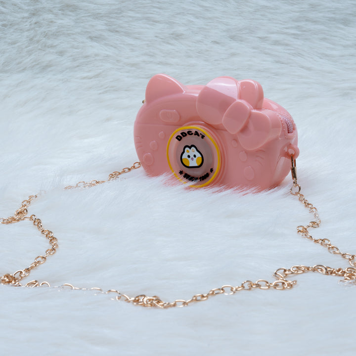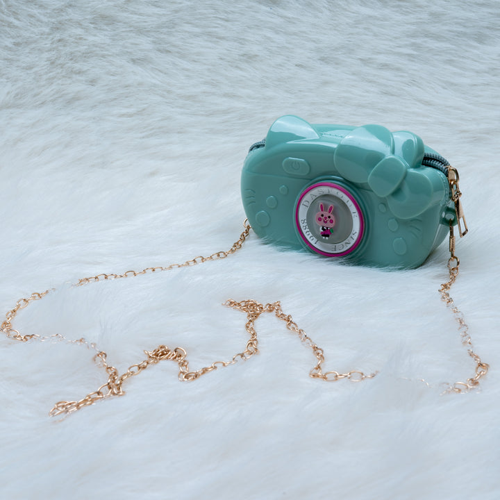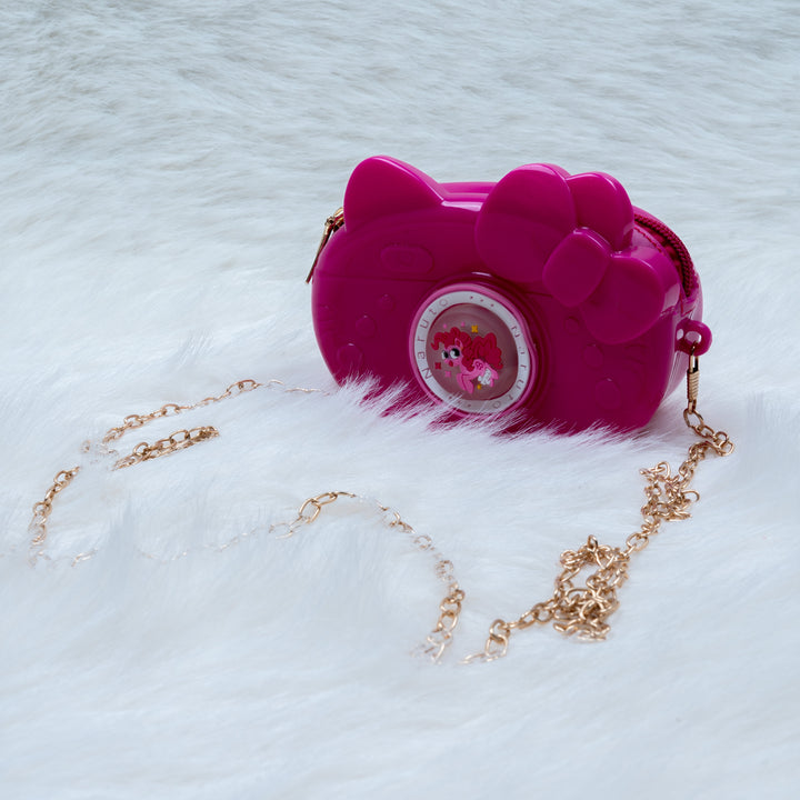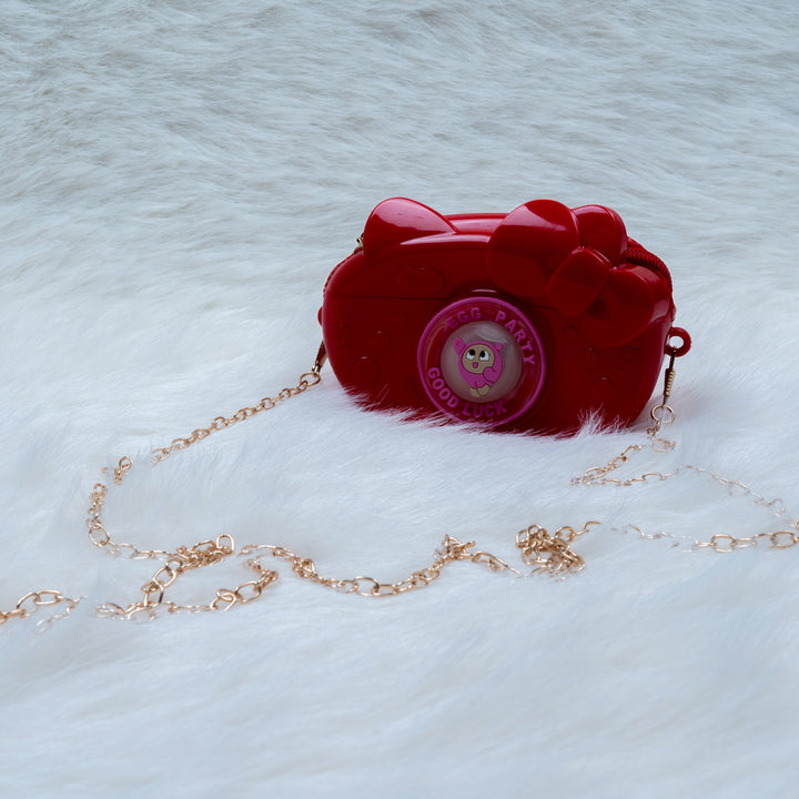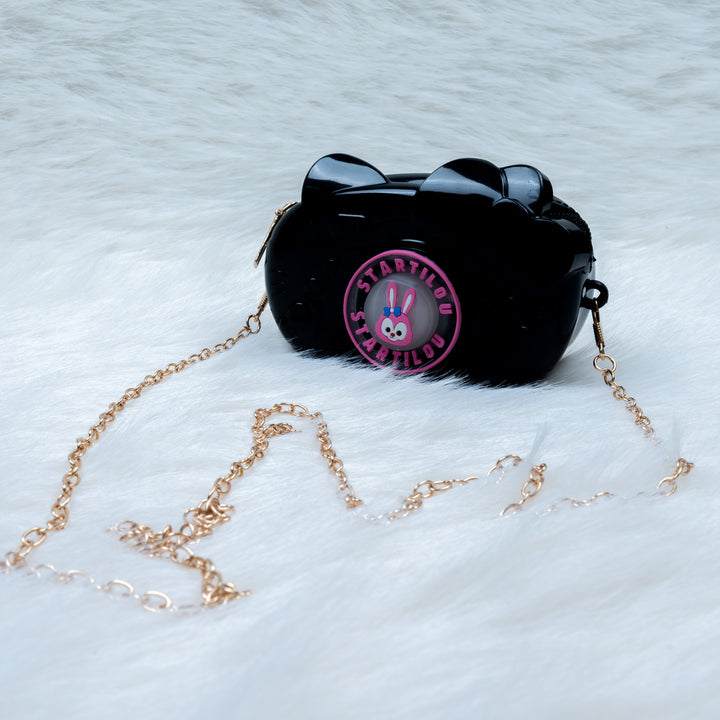 Add a touch of fun to your little one’s outfit with this adorable black cartoon-themed shoulder bag. Designed in the shape of a cute bear with rounded ears, it features a playful bunny graphic labeled "STARTILOU" in pink. The stylish gold chain strap makes it perfect for casual outings or dress-up days. Made for girls who love fashion and fun, this small yet trendy bag is both functional and fabulous.