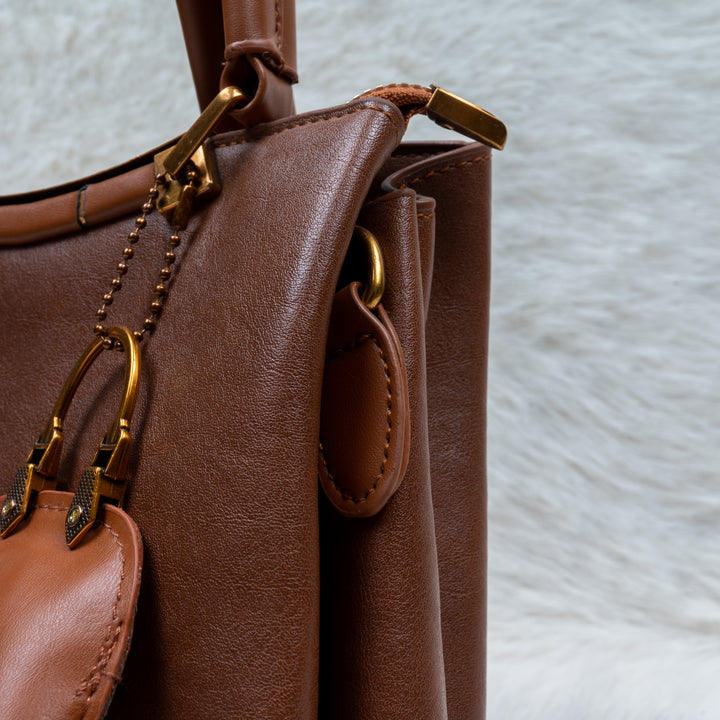 Monochrome Elegance: The entire bag features a beautiful, cohesive rich brown color, crafted from a high-quality, leather-look material.