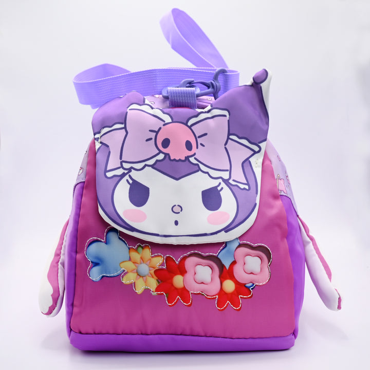Add fun and charm to your child’s travel or playtime with this Cute Cartoon Character Kids Travel & Storage Bag. Designed in a vibrant purple and pink color combination, the bag features an adorable cartoon face with 3D floral accents and character ears, making it perfect for kids who love stylish accessories.