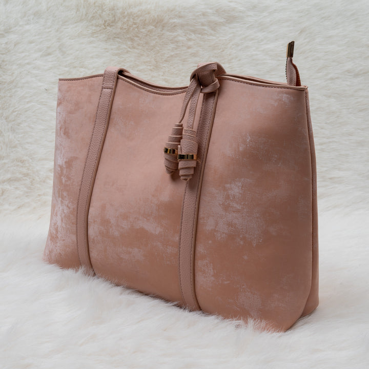 Elegant Light Brown Velvet Finish Women’s Handbag — Everyday Tote Style