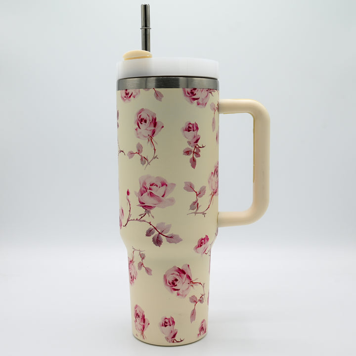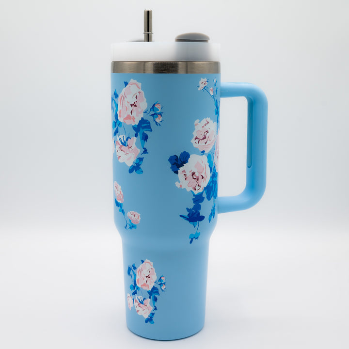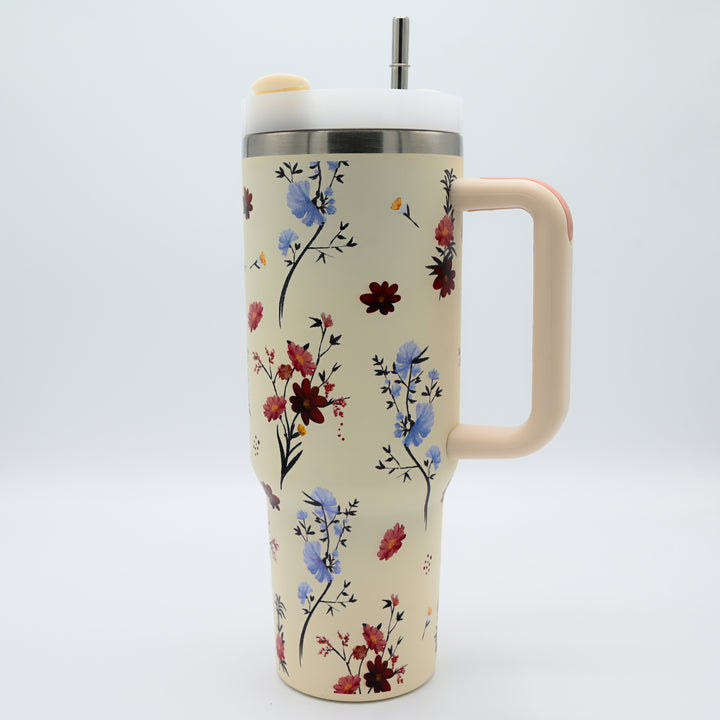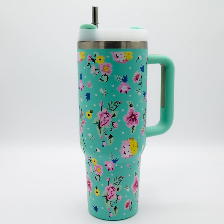 Floral Collection Premium Stainless Steel Tumbler – 40oz (With Handle & Metal Straw)