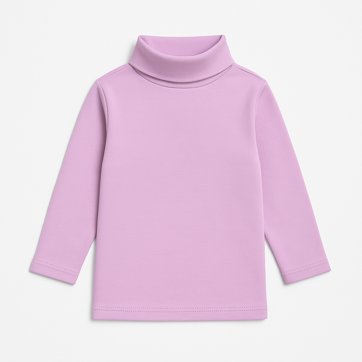 Brighten up your child’s winter wardrobe with this adorable baby pink high-neck top. Crafted from soft, stretchable cotton blend fabric, it ensures warmth and comfort throughout the day. The snug high-neck design helps keep your little one cozy in chilly weather, while the smooth texture and neat stitching add a touch of elegance to the outfit.