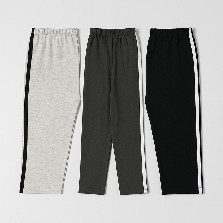 Keep your little one cozy and stylish with this pack of 4 infant baby boy pants, made from soft, breathable cotton fabric. Each pair features a comfortable elastic waistband for a secure fit and contrasting side stripes that add a sporty, trendy touch.