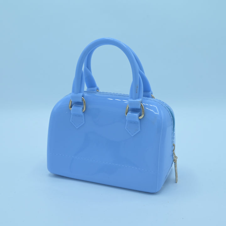 Add a touch of charm to your outfit with this adorable mini glossy handbag, designed for both style and convenience. Crafted with a sleek patent finish in a soft pastel tone, this bag features sturdy double handles and gold-tone hardware for a luxurious look. Its compact yet spacious interior makes it perfect for carrying small essentials like keys, cards, and makeup.