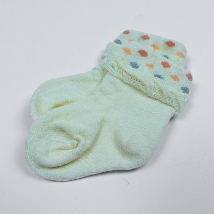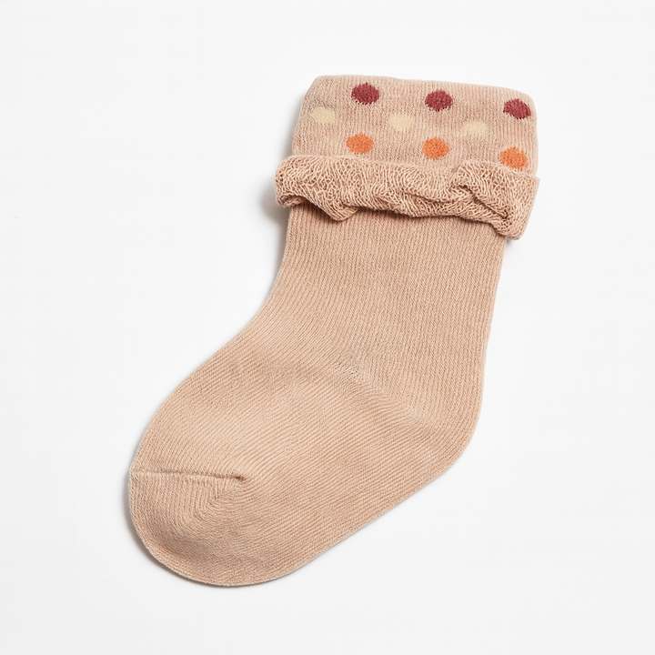 Playful Polka Dots: Each sock features a contrasting cuff with a delightful multi-color polka dot pattern, adding a sweet, cheerful touch.