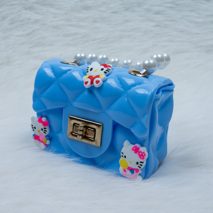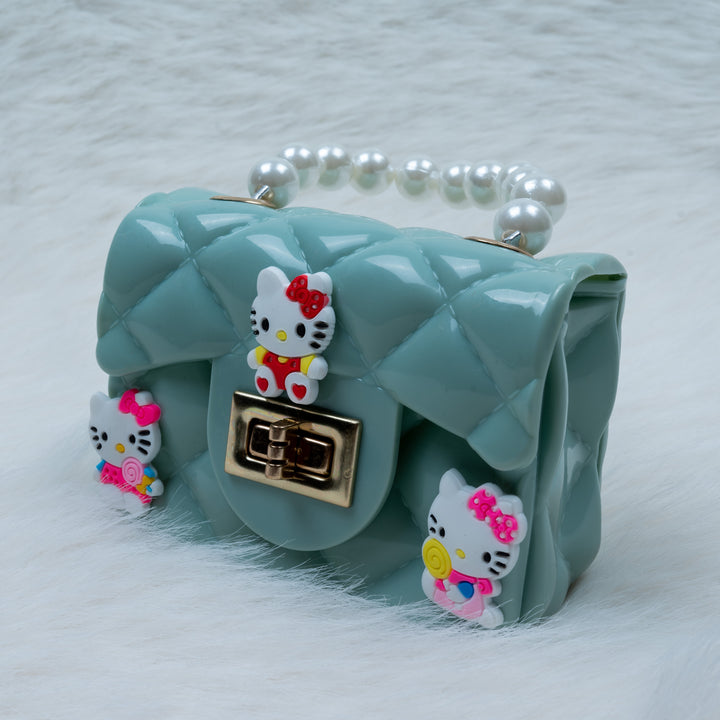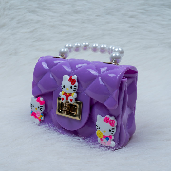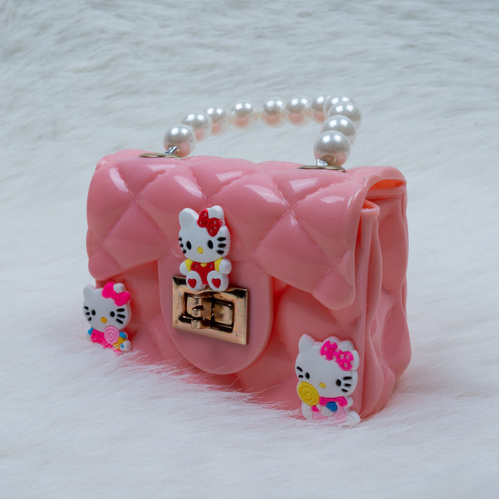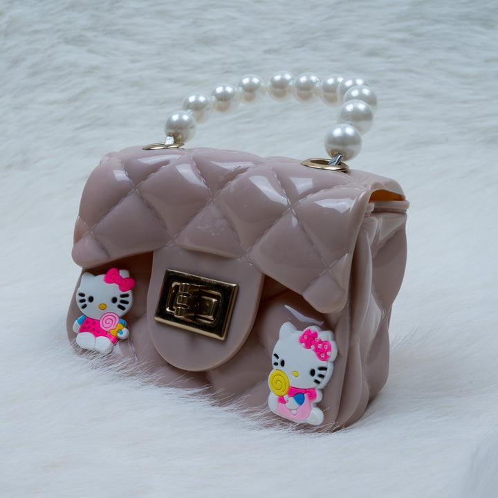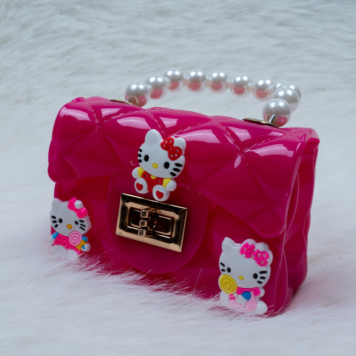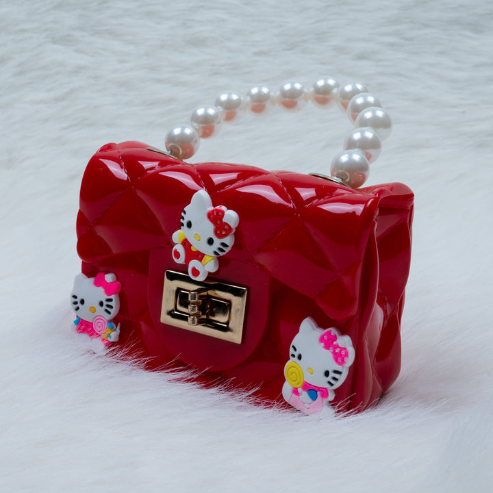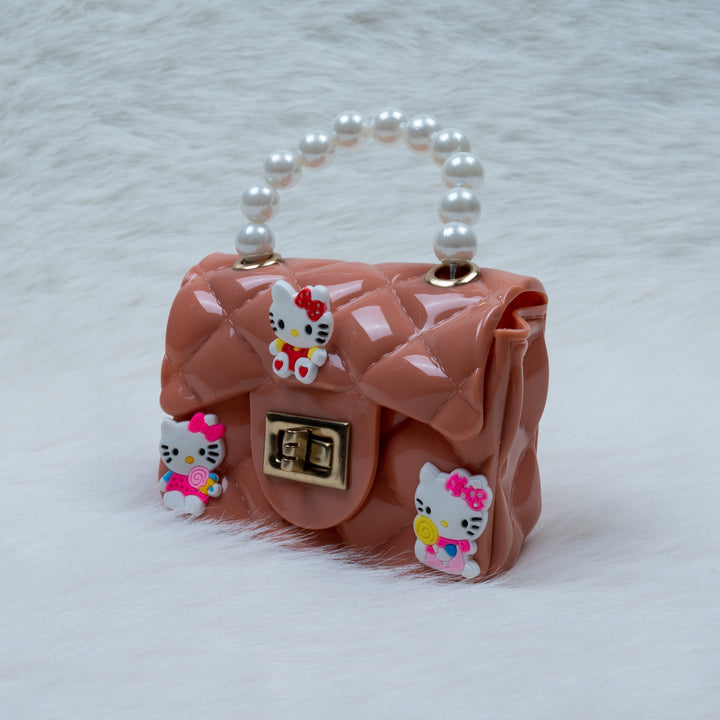 Add a touch of cuteness to your little one’s style with this black kids handbag. Designed with a glossy quilted finish, it features adorable Hello Kitty embellishments that every girl will love. The pearl beaded handle adds a classy charm, while the secure gold-tone lock closure keeps essentials safe. Perfect for parties, outings, or casual use, this stylish handbag is both playful and fashionable.