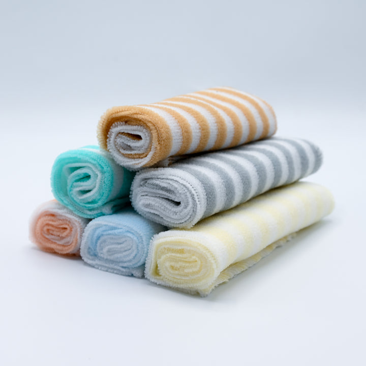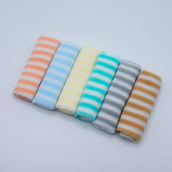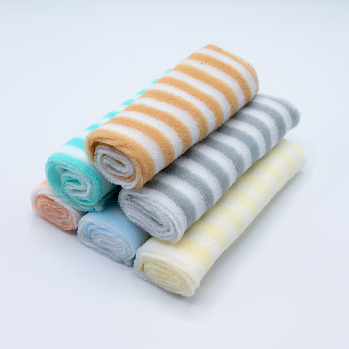 Keep your little one fresh and clean with this Soft Cotton Baby Washcloth Set, designed especially for delicate baby skin. Each towel is made from 100% premium cotton, ensuring extra softness, high absorbency, and quick drying. The set includes multiple adorable striped colors like yellow, blue, grey, and peach — perfect for everyday use during bath time, feeding, or diaper changes.
