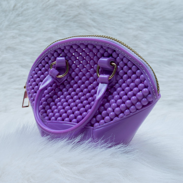 This stylish blue kids handbag is designed with a unique beaded texture that makes it both fun and fashionable. Featuring sturdy double handles and a smooth zip closure, it’s perfect for carrying small essentials like toys, candies, or accessories. Lightweight yet durable, this handbag adds a touch of charm to any outfit, making it ideal for parties, outings, or everyday use.