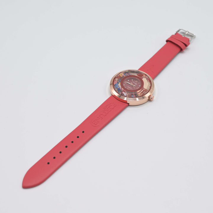 Rose Gold & Red Leather Women’s Watch – Sparkle in Every Moment