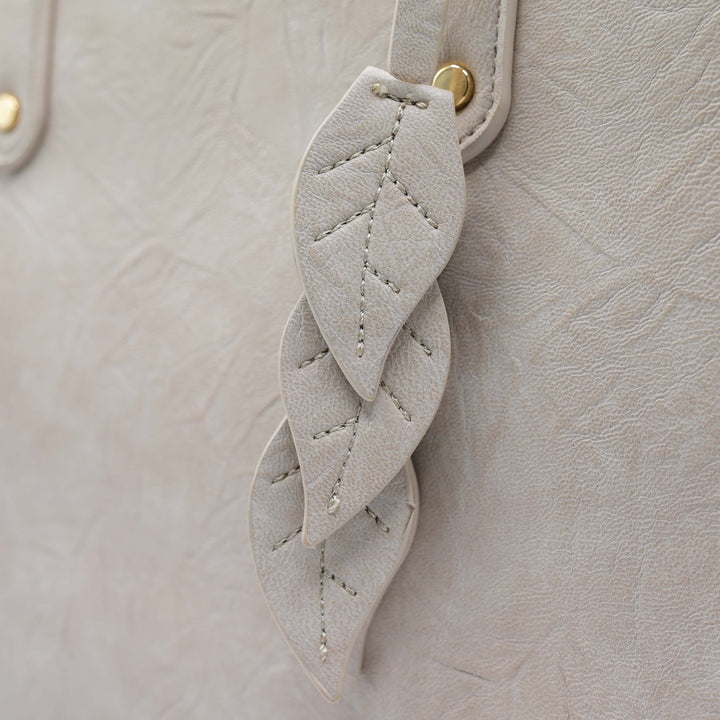 Step out in timeless sophistication with this FS Fashion Light Beige Handbag, crafted from soft, high-quality faux leather. Its smooth matte texture, gold-tone hardware, and decorative leaf charm combine elegance with modern style. Perfectly sized for everyday use, this handbag offers ample space to carry your essentials in organized style — whether for work, shopping, or casual outings.